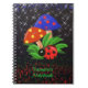 Pequena Ladybug com cogumelos e faíscas. Design colorida, fofa, personalizada.