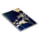 Impressão de cianótipo de marigóides dourados feitos por artistas em um caderno espiral de vazios.