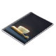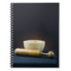 Fotografia de uma argamassa e um calcanhar sobre fundo azul da meia-noite.
