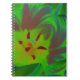 Este incrível notebook apresenta uma bela fotografia de uma tulipa. A fotografia foi colorida artificialmente, resultando numa flor verde mística brilhante, com tons azuis, vermelhos e amarelos ao longo de toda a sua extensão.