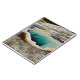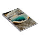 Uma fotografia de uma piscina térmica em Primaveras Quentes Mammoth, Parque Nacional Yellowstone.