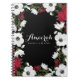 Notebook personalizável com flores brancas e vermelhas e script de caligrafia moderno. Itens semelhantes estão disponíveis na minha loja.