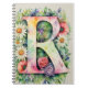 Caderno Espiral Notebook Personalizado com Letra R Floral Watercol