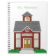 O notebook do professor de escola, com gráficos de uma antiga casa de escola vermelha, com um fundo branco. Personalize o texto, para você ou para o seu professor favorito.
