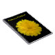 Este incrível notebook mostra uma foto de uma flor amarela bonito em um fundo preto. Há um texto personalizável no topo, permitindo que você personalize este notebook para si mesmo ou o transforme em um presente adorável para outra pessoa.