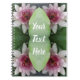 Fotografia e caderno de texto personalizado de flores cor-de-rosa.