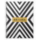 Notebook Moderno Linhas Geométricas Pretas e Brancas Personalize a frente com ou sem texto. A área dourada pode ser deixada no design ou removida. Você também pode reposicioná-lo em qualquer lugar.