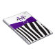 Este notebook personalizado de jornal de stripes de zebra branca e traseira tem uma fita FAUX roxa e broche de cristal, junto com caixas de modelo para que você adicione seu nome, monograma, ano ou outro texto. Se precisar de ajuda para personalizar este item, envie um e-mail para niteowlstudio@gmail.com para obter assistência.