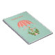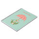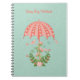 O notebook Rainy Day em cor de pêssego e verde. O design é um guarda-chuva com flores e borboletas, com a chuva caindo. As palavras são permanentes. Obrigados à Hungryjpeg para alguns dos elementos do design.