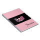 Notebook mostrado com uma impressão de foto de um impressão colorido cor-de-rosa brilhante em um fundo preto e um nome personalizado. Notebook mostrado em rosa. Personalize este item e altere o nome para o seu, retire ou adquira conforme mostrado.