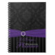 Esta cinza personalizada e damasco preto com o notebook planejador de casamento de listras tem uma fita roxa IMPRESSA e uma joia de diamante IMPRESSO nela, e um texto personalizável que você pode mudar para atender às suas necessidades.Envie um e-mail para niteowlstudio@gmail.com se precisar de assistência.