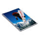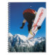 Notebook mostrado com uma impressão de foto de uma cena de inverno e snowboard. Personalize este item ou comprar como está. Imagem do stock