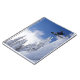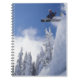 Notebook mostrado com uma impressão de foto de uma cena de inverno e snowboard. Personalize este item ou comprar como está. Imagem do stock