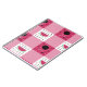 Como homenagem às saborosas guloseimas do verão, este clássico padrão de toalha de piquenique é adornada com uma fatia de melancia cercada por formigas e sementes nos quadrados brancos e uma grelha de chaleira moldada por bifes, cogumelos e peças de carvão na outra.
