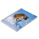 Notebook mostrado com uma impressão de foto de um belo tigre exótico correndo no oceano. Personalize este item ou comprar como está. Imagem do stock