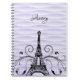 Junte notas importantes ou lembretes com um notebook púrpura torre Eiffel Flourish. O design de notebook apresenta a Torre Eiffel adornada com elogios elegantes contra um fundo ondulado roxo. Cores adicionais disponíveis com este design também. Este item pode ser personalizado com um nome ou monograma da sua escolha. Entre em contato comigo se precisar de assistência para personalização.