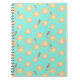 Notebook com padrão tropical apresentando cavalos marinhos e águas-vivas em uma paleta de cor verde-mar, laranja, azul e amarela. Para amantes coloridos de papelaria à procura de uma vibração tropical de verão.