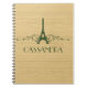 Notebook francês florescente elegante e chico, com fundo de aparência falsa de grãos de madeira e design de torre Eiffel em verde escuro, com cascatas de espirais na moda. Esta design de moda e moda é fácil de personalizar com o texto personalizado de sua escolha. Clique em "Personalizar" para encontrar mais opções de personalização.