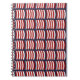 O notebook espiral com um Vikings inspirou um padrão de veleidades vermelhas e brancas de uma nave em um fundo azul marinho.
