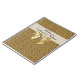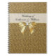 Livro de hóspedes elegante do casamento feito em um teste padrão goldtone do redemoinho. Um ouro afiou a banda branca semi transparente, através da parte superior, com um arco decorativo goldtone, na parte inferior. O texto preto está pronto para personalizar para seu casamento. Produtos de harmonização do casamento disponíveis.