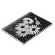 Esta imagem mostra um aglomerado de margaridas com pétalas brancas e polos púrpuros-azuis em greve. O fundo e a folhagem estão em preto-e-branco, criando um efeito colorido seletivo que enfatiza as cores vívidas dos centros das flores. O contraste entre os arredores dessaturados e as delicadas flores dá à imagem uma qualidade artística, quase surreal, destacando a beleza e a complexidade da natureza.