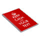 O vermelho mantem o texto customizável calmo dos cadernos |. Presente bonito do vintage para a escola, a casa e o escritório. Texto de Personalizable e cor do fundo. Criar seus próprios mantêm a calma e continuam a paródia do slogan.