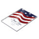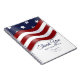 Este design tem cores vermelhas, brancas e azuis acenando para fazer parecer que a bandeira está acenando. O texto na frente está na cor azul marinho dizendo Obrigado pelo seu serviço. Aqui está um roteiro de espiral e tudo pode ser trocado com suas mensagens, se preferir.