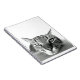 Fotografia de um gato com a cabeça assentando sobre um travesseiro e olhando para a câmera.