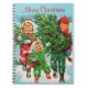 Feliz Notebook de Natal com uma imagem de natais vintages muito brilhante e colorida lembrando uma de sua juventude enquanto vemos crianças felizes e alegres trazendo a árvore de Natal de volta para casa depois de cortá-la na floresta.