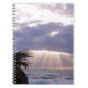 Os raios do Sol invadem o cobrir das nuvens no início da manhã, perto da costa do oceano.