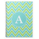 Um limão e um padrão de chevon turquesa decoram este notebook na moda. Personalize este notebook monograma mudando a letra do monograma. Este notebook é excelente para escola, viagem, negócios etc... O design é de arte original.