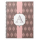 Uma cor damasco rosa e cinza elegante decora este caderno. Personalize este notebook mudando a letra do monograma para atender às suas necessidades. Use este caderno de na moda para escola, negócios, um casamento, etc... O design é da arte original.