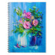Caderno Espiral Óleo pintando um buquê de rosas. Impressionista em