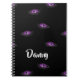 Adicione o seu nome aos olhos roxos de gato sobre o padrão de fundo preto.