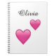 A fun, stylish notebook featuring a modern hearts-emoji design and the name Olivia. Perfect for school, journaling, note-taking, gifting, or everyday use for kids and teens.