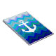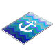 Silhueta branca lisa simples da âncora em um fundo ondulado temático da água bonita que consiste em máscaras e em matizes diferentes do azul.