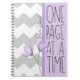 Stay focused and inspired with this motivational notebook featuring the encouraging phrase "One Page at a Time." Designed with a stylish gray and white chevron background, soft lavender accents, and delicate watercolor flowers, this notebook is the perfect blend of modern and calming.