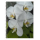 Um notebook com formato pessoal, encadernado em espiral, que apresenta uma foto cobrir de flores brancas e adoráveis das Orquídeas Phalaenopsis, comumente conhecidas como Orquídeas da Mama. Um design floral adorável!
