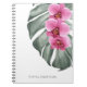 Estilo tropical lindo faz deste caderno um prazer de usar. Ele apresenta vibrantes orquídeas rosa quente - fúcsia e uma bela folha de Monstera em aquarelas pintadas. O design é simples e elegante com uma aparência minimalista energizada pelos elementos botânicos tropicais. Este design é uma escolha maravilhosa para empresas costeiras, ou para uso em casa ou na escola. Personalize com seu nome ou outro texto desejado.