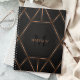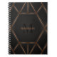 Um caderno abstrato de estilo luxuoso e fresco com desenho geométrico preto e dourado. Personalize com seu monograma e nome.