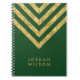 Caderno Espiral Ouro verde elegante personalizado Chevron do falso