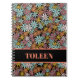 Notebook com padrão colorido personalizado. O notebook da escola personalizada é perfeito para os estudantes. Personalize-o com o seu nome para uma aparência exclusiva de cinta.