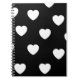 Caderno Espiral Padrão de Coração Simples, Branco e Preto