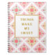 Caderno Espiral Padrão de Diamante Floral Rosa Doce