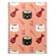 Caderno Espiral Padrão de Kawaii Sushi, cor-de-rosa-branca