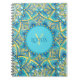 Caderno Espiral Padrão de Mandala Floral de Turquesa Azul Monogram