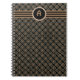Caderno Espiral Padrão de Monograma Clássico Preto e Dourado