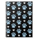 Caderno Espiral Padrão De Patas, Patas Cachorros, Patas Azuis, Cor