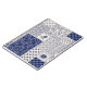 Padrão de manta delicado e abstrato, azul-indigo escuro e ornamento floral bege claro de flores rosa estilizadas, folhas no estilo Provence. Design, pintura batik, bordado de travesseiro