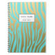 Caderno Espiral Padrão Dourado e azul de faixa de zebra